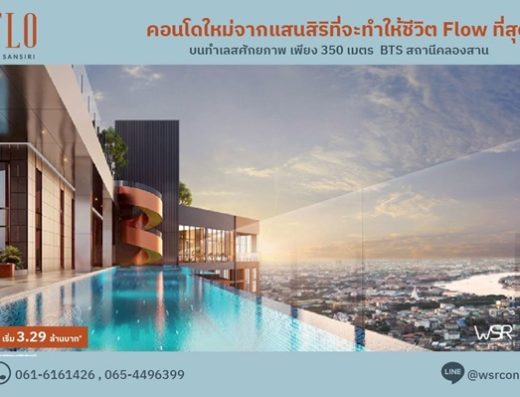 ขายคอนโด FLO by Sansiri ราคาเริ่มต้นเพียง 3.09 ลบ. ทำเลคลองสาน ใกล้ BTS และ ICONSIAM โทร 061-6161426